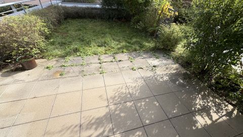 · Großes Wohnzimmer mit Terrasse und kleinem Gärtchen