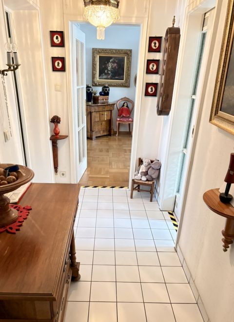 Diese stillvolle Wohnung strahlt einen besonderen Charme aus. Die Wohnung enthält viele Stilelemente, die der Wohnung einen besonderen Charme verleihen. Stuckelemente um die Leuchtstellen an der Decke, alle Türen und Türrahmen mit Holzapplikationen. Tageslichtbad Bad mit verspielten Fliesen. Die Fenster wurden 2002-2005 alle erneuert. Im gesamten Wohnbereich liegt Echtholzparkett. Zudem liegt Glasfaser im Haus.